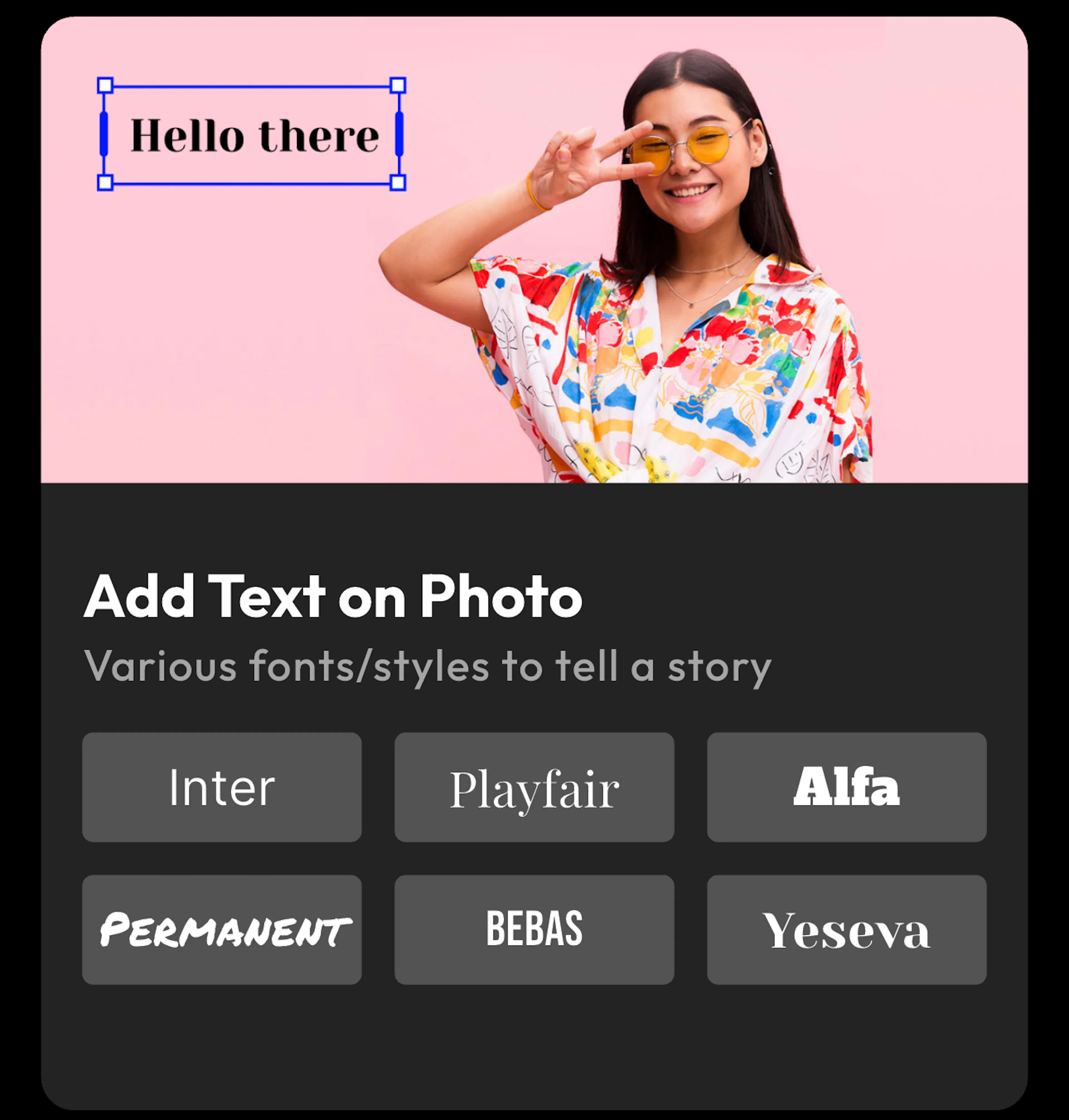 - Change the font style (e.g., Roboto, Playfair, or Bebas)