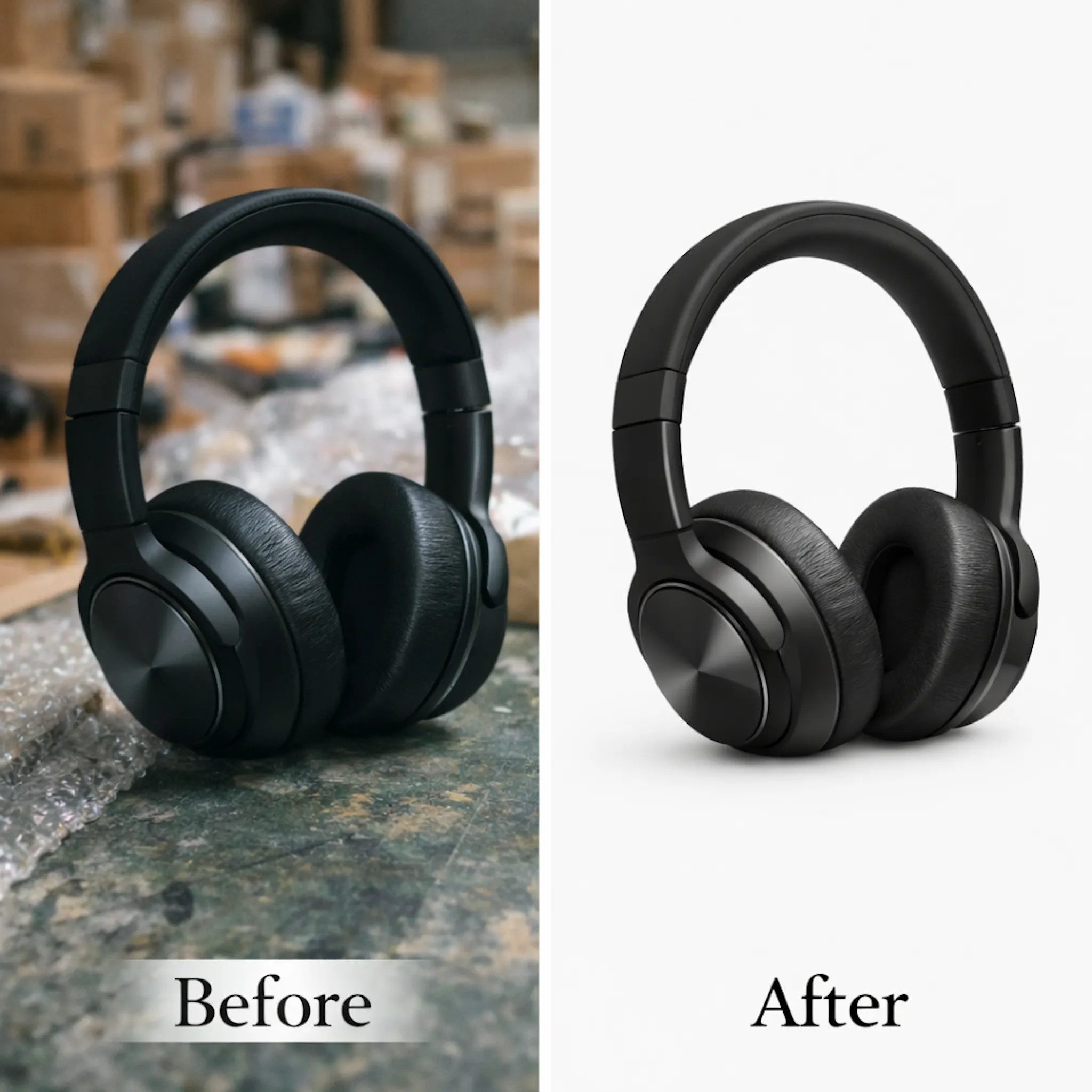 The enhanced version shows how Blend Studio Shot transforms it into a cleaner, studio-style product image. This makes it easier for your product to look professional and trustworthy.
