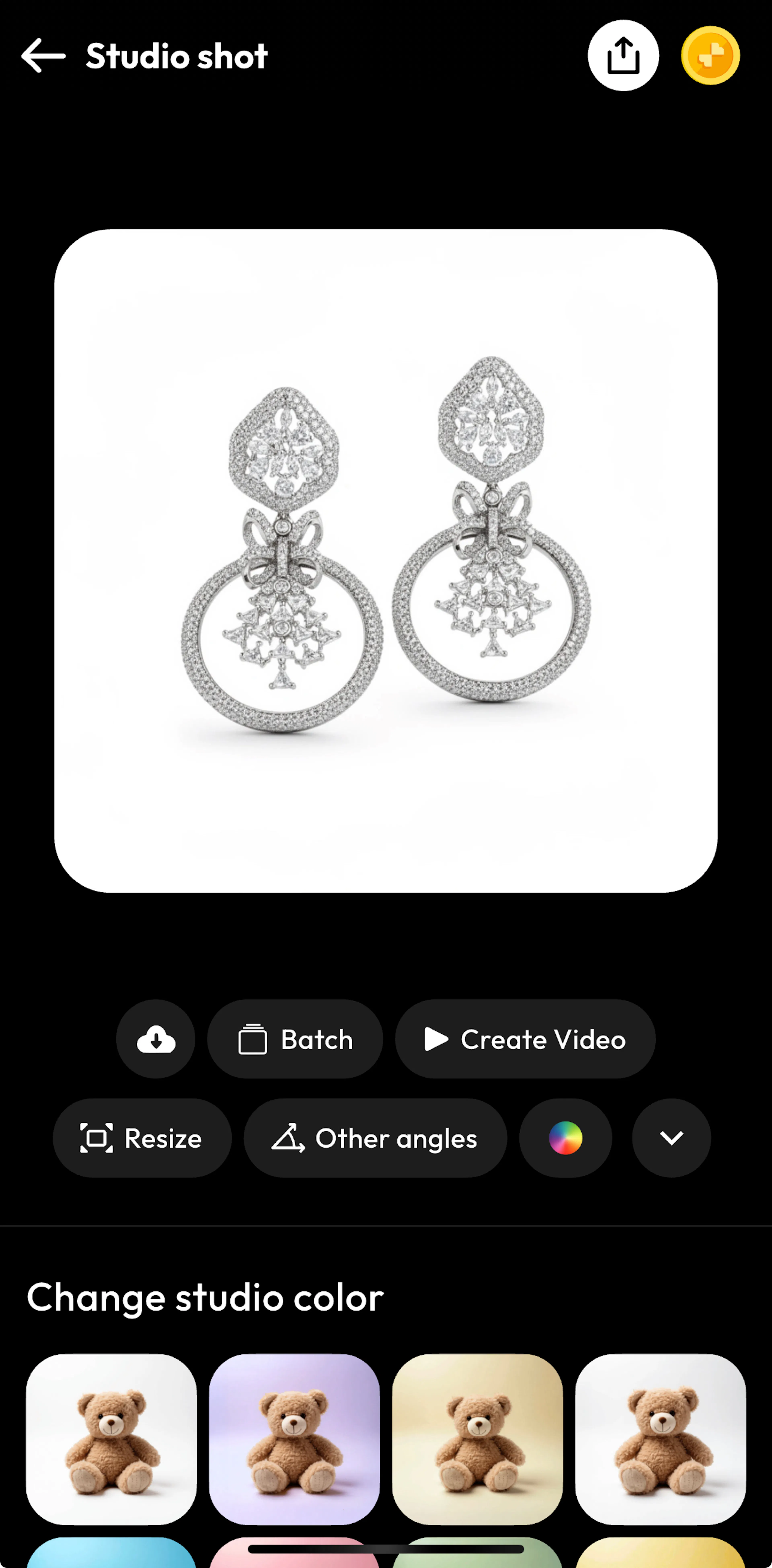 Once your image is generated, you can refine it using the editing tools available inside Studio Shot.