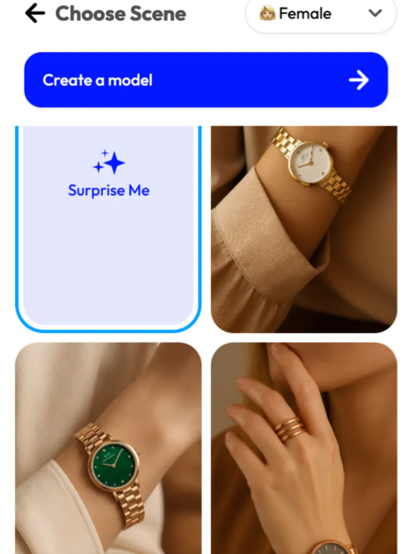 Using multiple wrist styles helps you create a diverse watch on model images that appeal to different buyers. If you are confused, you can select the option “Surprise Me” and let Blend do the magic for you.