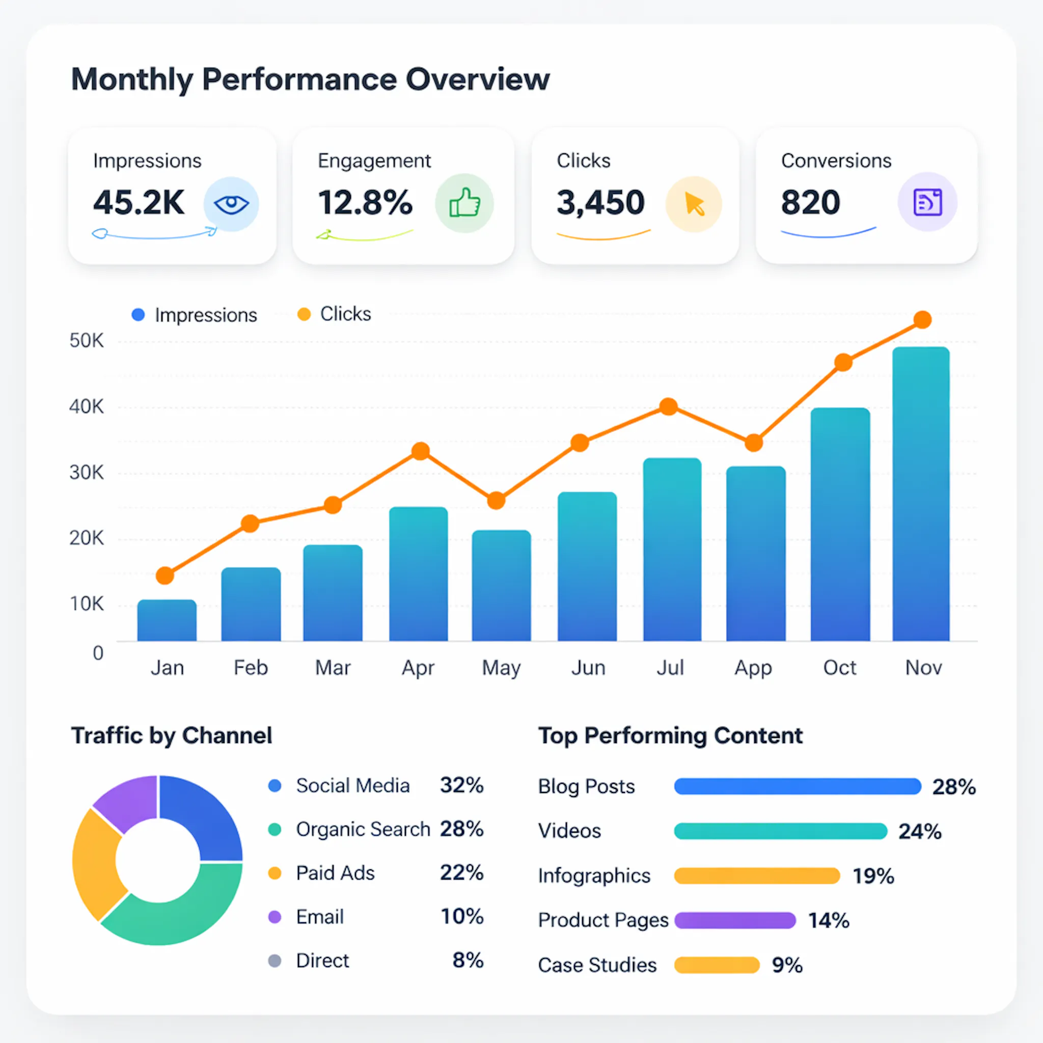Analyzing performance data helps you understand which visuals work best. When you use marketing data visualization, it helps you track metrics such as engagement rates, click-through rates, and conversions.