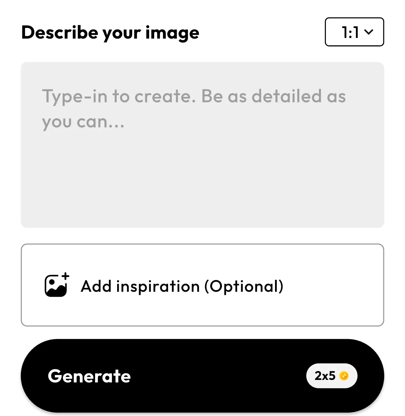 You can also change the aspect ratio (bottom right). For Wattpad covers, select or enter a 2:3 vertical ratio if available. Then tap on the arrow button (↑) to generate.