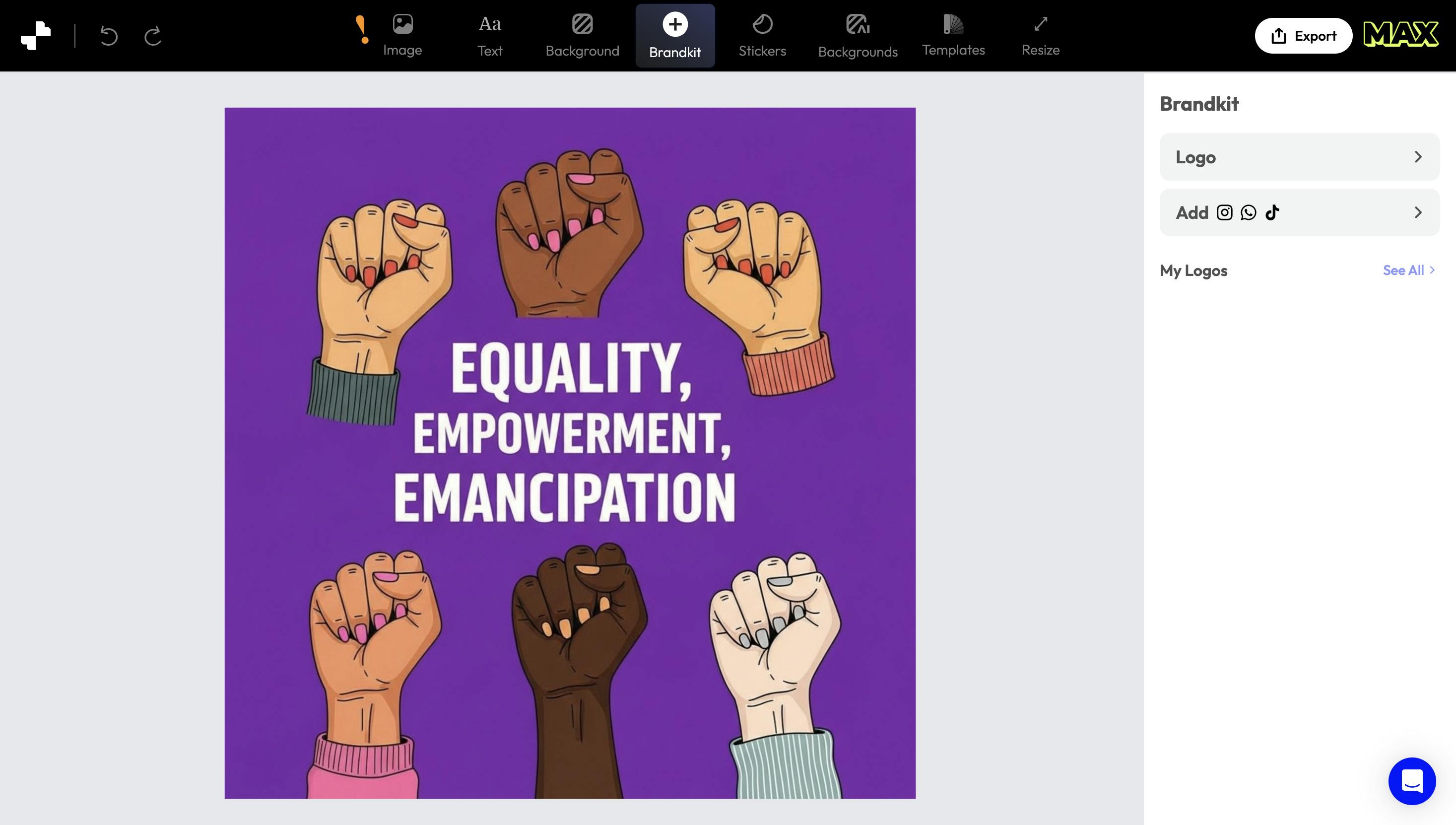 For your International Women’s Day poster, adding your logo reinforces credibility and ensures brand consistency across campaigns. Simply upload your logo, position it subtly at the bottom center or corner of the design, and adjust size and opacity for a professional finish.