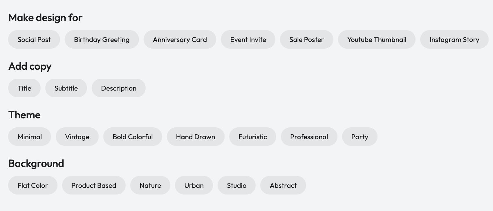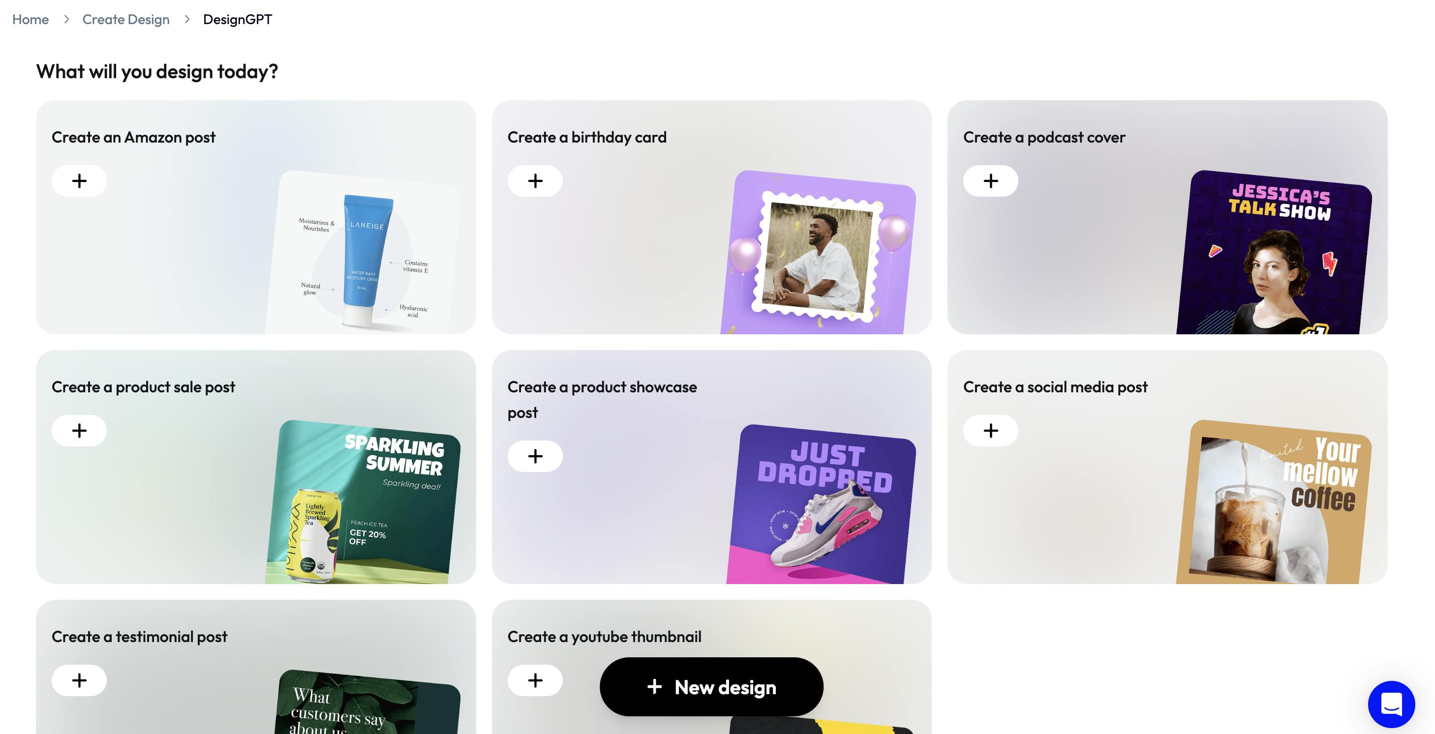 When you click the “Social Posters” button, it’ll take you to the DesignGPT page where you can create eye-catching designs. These are some of the poster options Blend has: