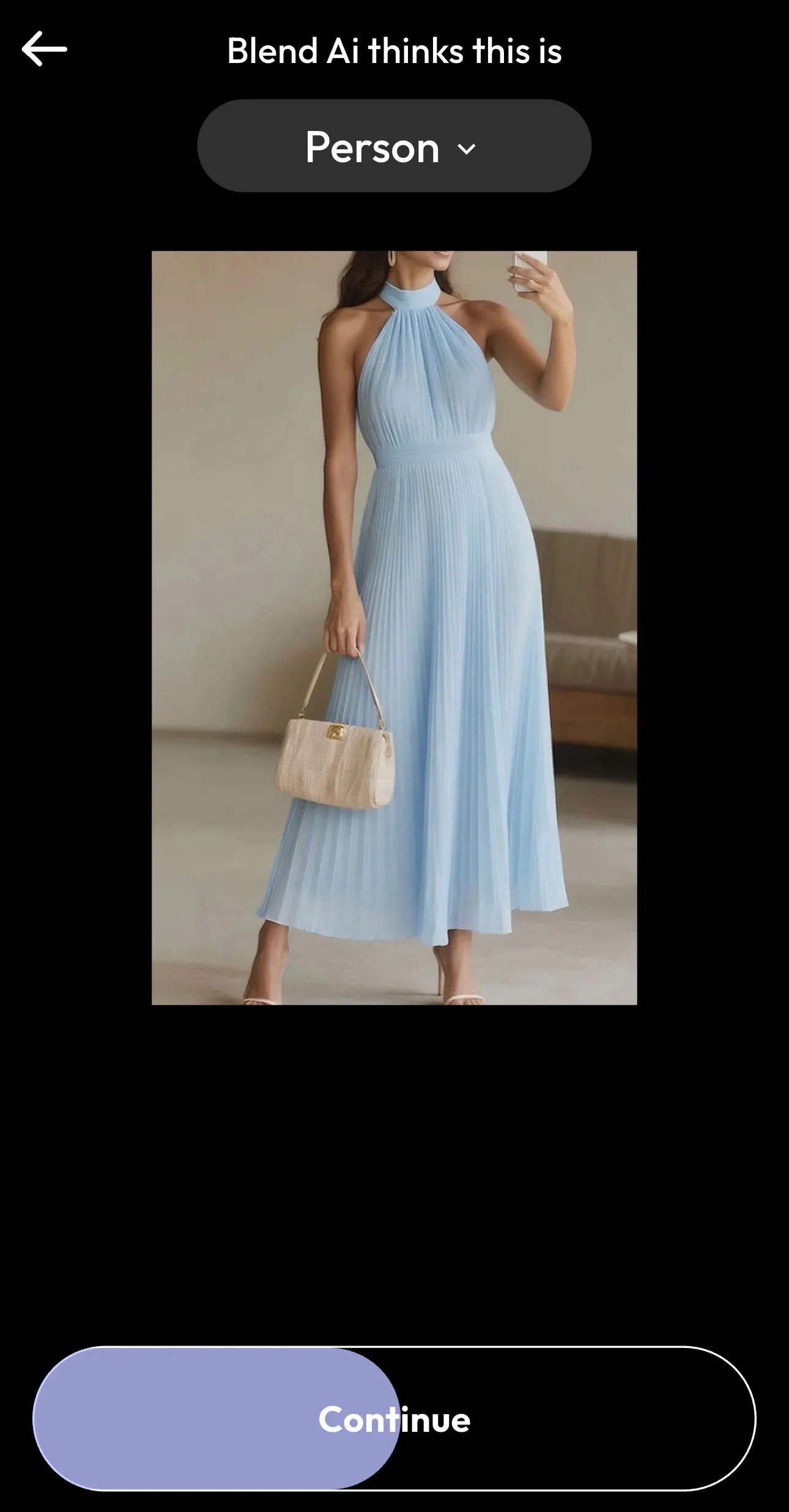 Now comes the transformation. Click “Continue”, and Blend will automatically generate your ghost mannequin image. Behind the scenes, the AI performs multiple advanced steps: