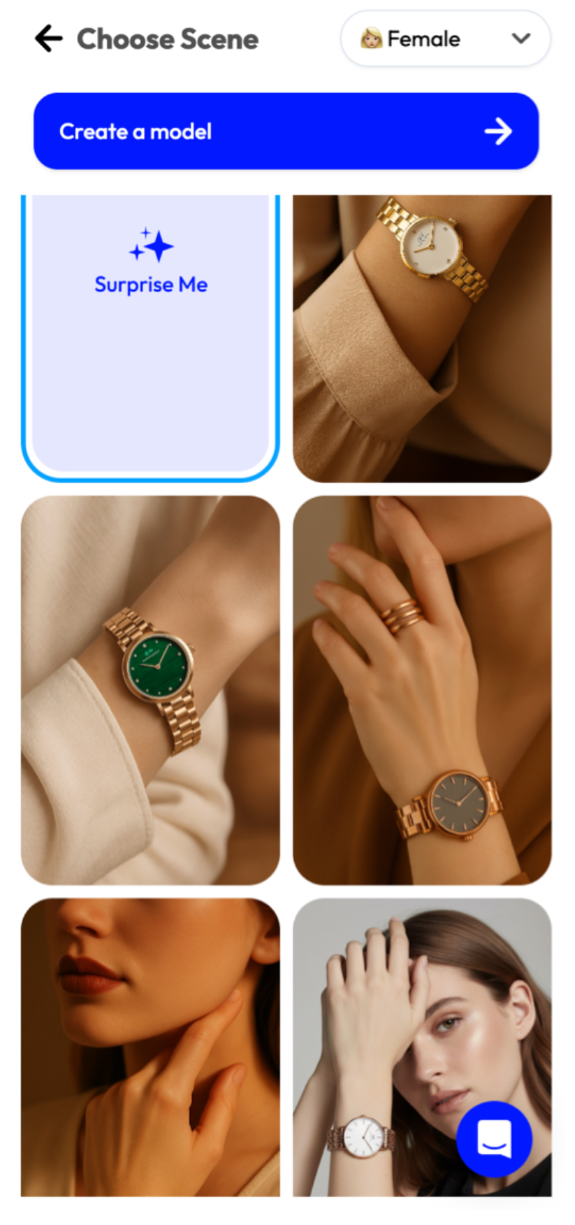 Using multiple wrist styles helps you create a diverse watch on model images that appeal to different buyers. If you are confused, you can select the option “Surprise Me” and let Blend do the magic for you.