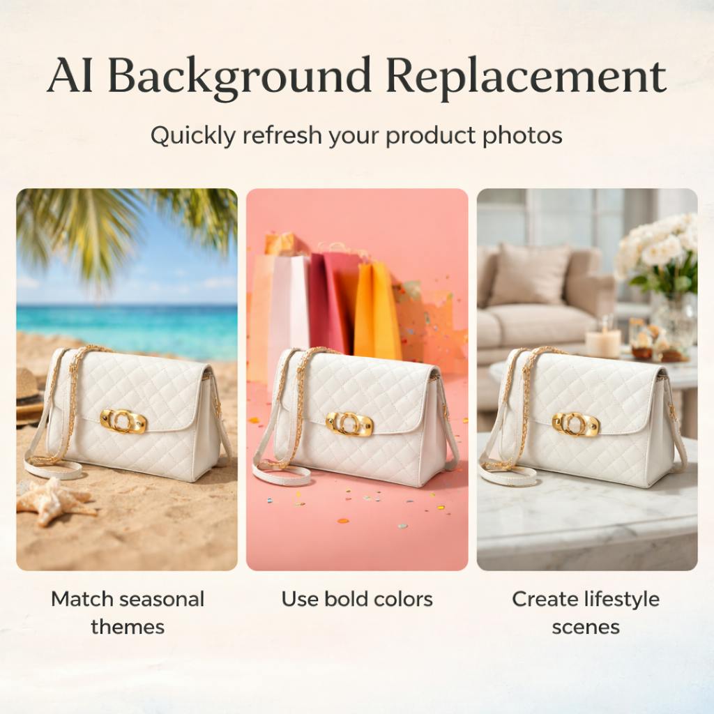 Social media trends change frequently, and visuals that feel outdated can easily get ignored. Instead of reshooting products for every campaign, background replacement allows brands to adapt quickly.