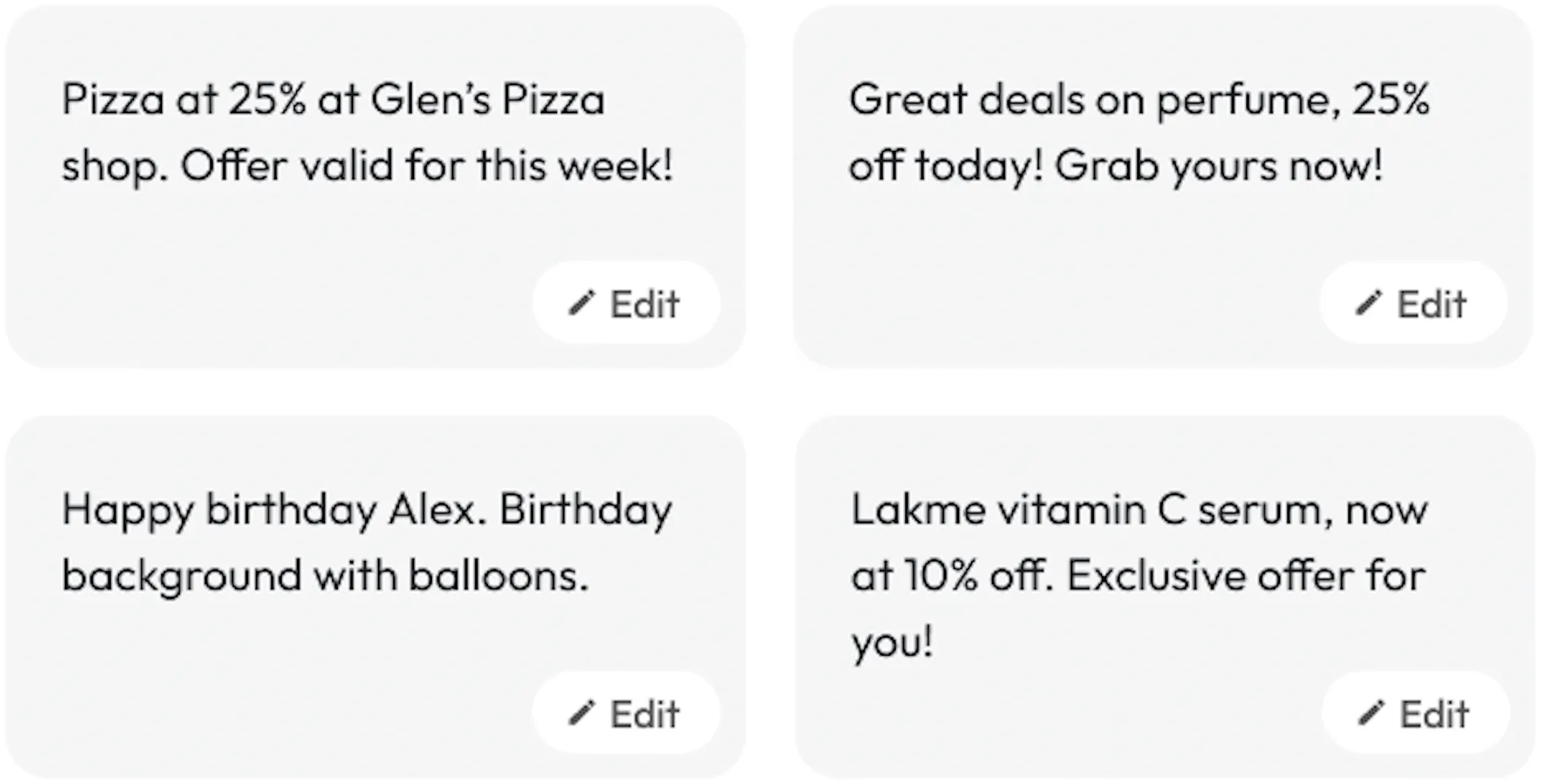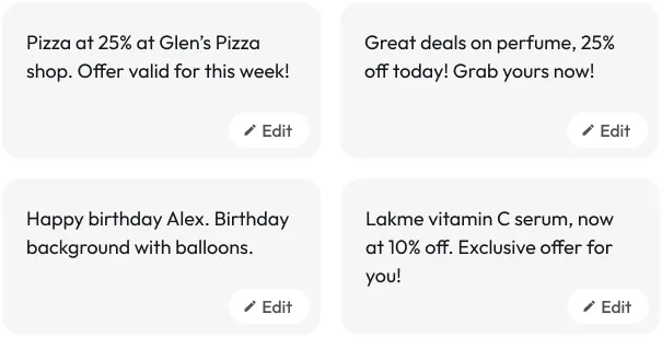 Not just visuals, our AI generates engaging copy to complement your designs, so your messaging is always aligned.
