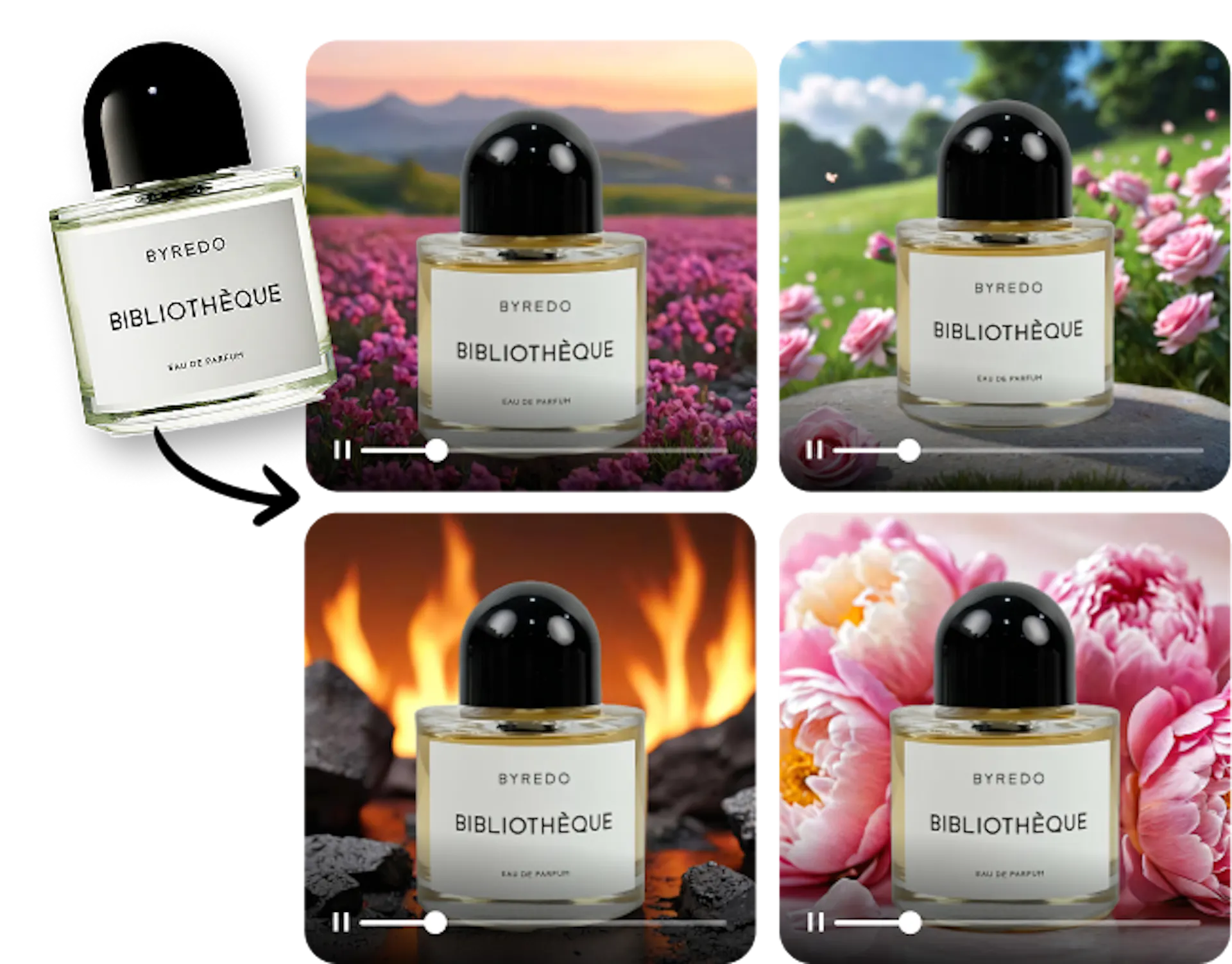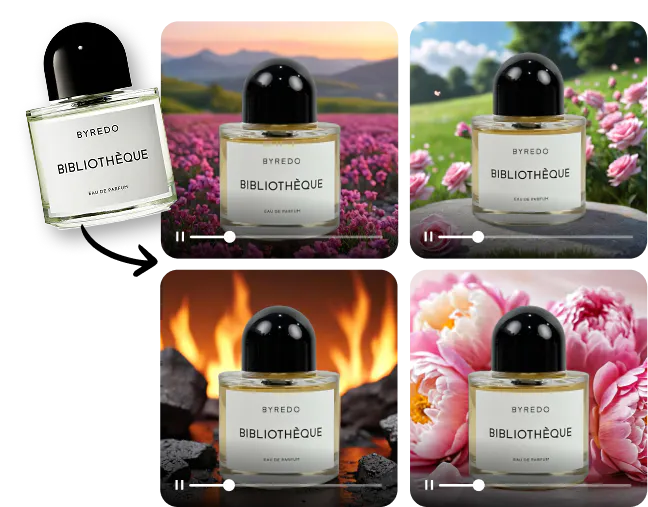 Choose from AI-generated scenes, and watch your product come to life with smooth animations
