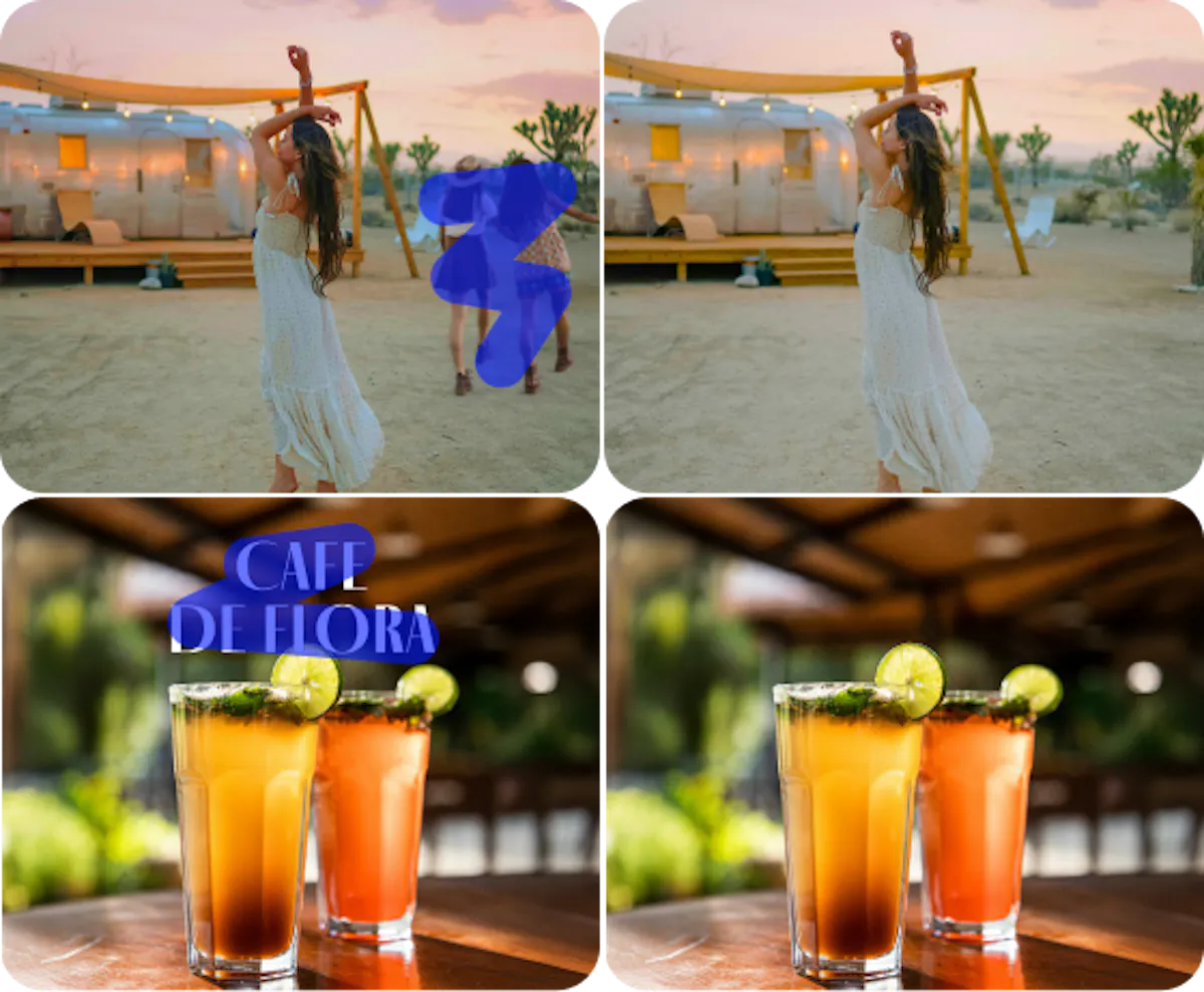 Easily remove objects, text, logos, watermarks, people, and more in seconds.
